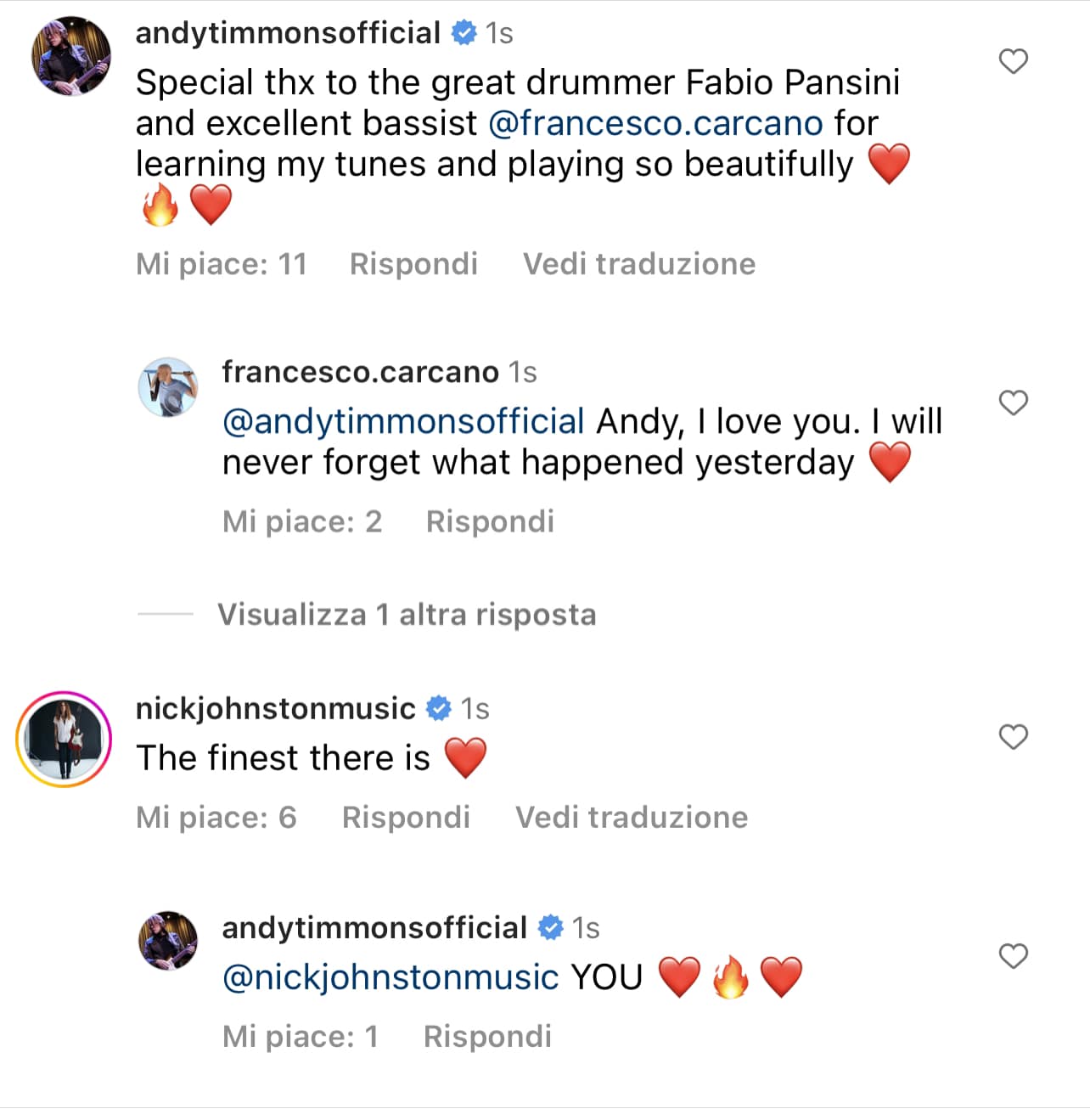 Andy Timmons: devo concentrarmi molto sul gestire mente e cuore quando ci sei tu. Le emozioni che provo semplicemente parlando con te della vita lasciano il segno. Ti voglio bene. Non devo aggiungere altro.